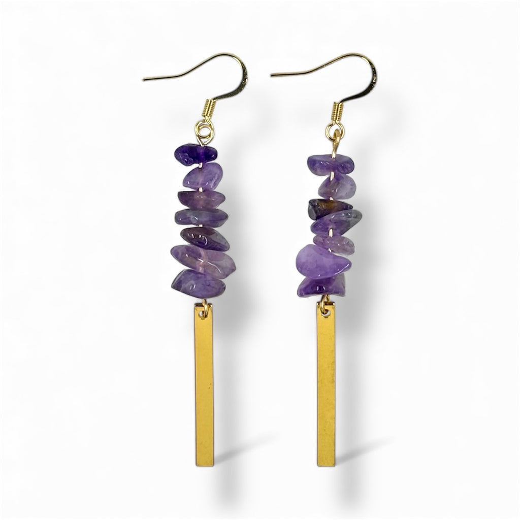 Add a touch of magic to your look with our Amethyst Gemstone Gold Dangle Earrings. Featuring natural Amethyst gemstones and gold-plated stainless-steel ear wires, these earrings are perfect for any occasion.
