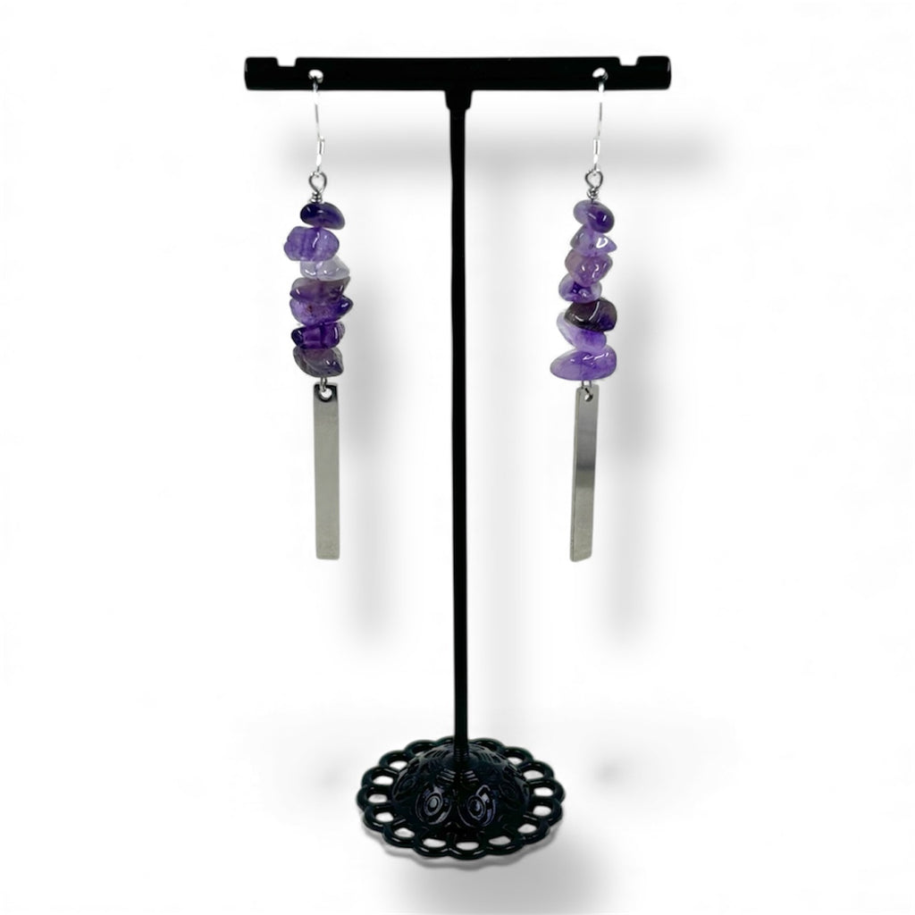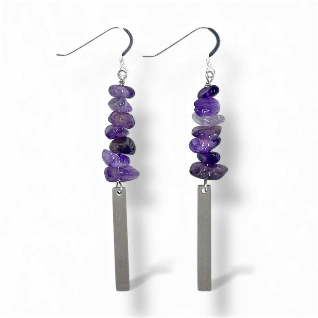 Amethyst Silver Dangle Rectangle Earrings | Sterling and Stainless Steel